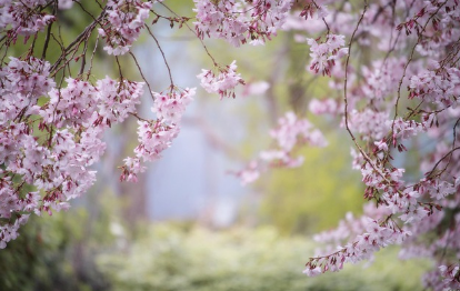 대나무 숲으로 이루어진 담양 죽녹원은 봄에는 푸른 대나무와 함께 벚꽃 터널을 제공합니다.